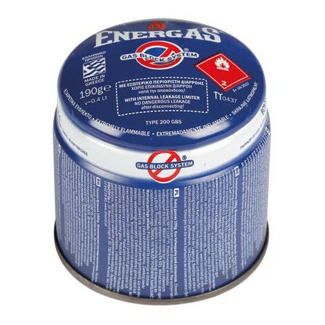 Caractéristiques Physiques: •• Capacité Volumique: 400 l • Données Environnementales: •• Type de Gaz: Butane • Informations de Base sur le Produit: •• Couleur: Bleu •• Hauteur: 9.5 cm •• Diamètre: 9 mm •• Poids: 293 g