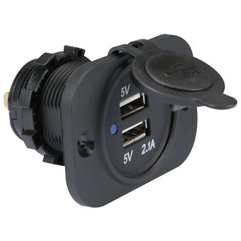 CaractĂ©ristiques :fonctionne avec tout appareil USB rechargeable – Ă encastrer ou Ă monter avec supports – 2 ports USB avec couvercle anti-Ă©claboussures – protection thermique (extinction automatique) – protection contre la polaritĂ© inversĂ©e – protection contre le court-circuit – limiteur de courantSpĂ©cifications :entrĂ©e: 12-24 VDC – sortie: 5 V 2.1 A, 5 V 1 A – dimensions: – diamètre de perçage: 26.5 mm + notch 2 mm – longueur: 42.5 mm + 3 mm pour couvercle plastique – plastic cover size: 59.4 x 42.4 mm – connecteurs: 6.3 mm receptacle (FBMI or FRMI can be used)