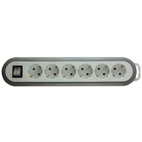 MULTIPRISE À 6 PRISES AVEC INTERRUPTEUR – GRIS/BLANC – TERRE ALLEMANDE