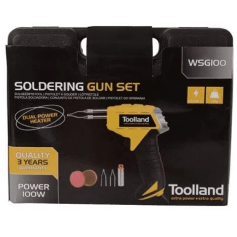 Le WSG100 est livré dans un boîtier en plastique pratique, dans ce cas il y a aussi de la place pour de l’étain, du flux de soudure et 2 pannes de rechange. Dès que vous branchez la fiche sur la tension secteur, la soudure peut commencer, le pistolet à souder a un poids d’environ 700 grammes et est donc très agréable en main.