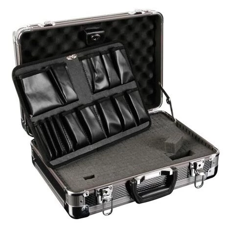 la valise d’outillage parfaite, solide et multifonctionnelle – offre un espace de rangement ample pour tous vos outils partie supérieure: mousse alvéolée panneau à outils partie inférieure: panneau en mousse de 6cm avec des cellules prédécoupées de 1,5cm: ce panneau est amovible ou malléable aux contours de l’outil pour que les outils restent bien fixés (outils non incl.) 5 séparateurs 2 x serrure à clef à charnière chromée bords renforcés en aluminium et coins métalliques manche en ABS confortable outils pas livrés
